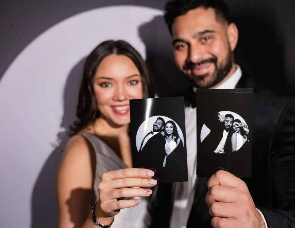 Our Glam Booth delivers studio-quality, black-and-white portraits with soft lighting and a high-contrast finish. Designed for weddings and elevated events, it captures timeless, editorial-style images your guests will love.
